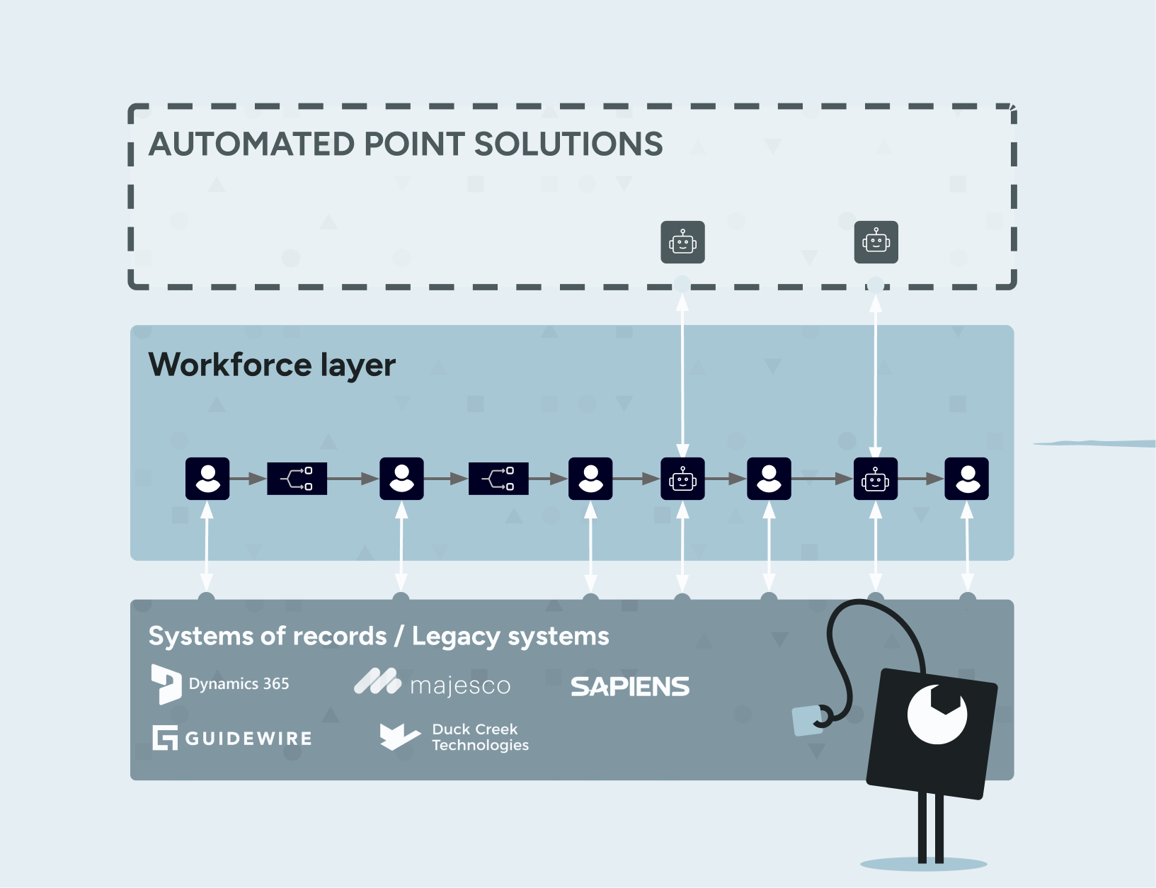 Your team handled most complexity, exceptions, and judgment themselves, acting as the glue between disconnected systems. Claims moved through multiple hands (often repeatedly) because automation couldn’t run processes end-to-end autonomously.